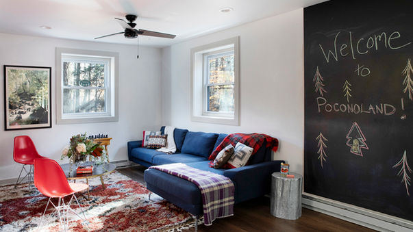 We completely reimagined this chalet, creating a magical getaway in the heart of the Poconos! Just steps to a private community lakefront with sandy beaches, Foxfire Haus is the perfect family getaway. Soak in the hot tub, make s'mores in the firepit, hang out in the game room, or curl up by the gas fireplace and watch a movie!